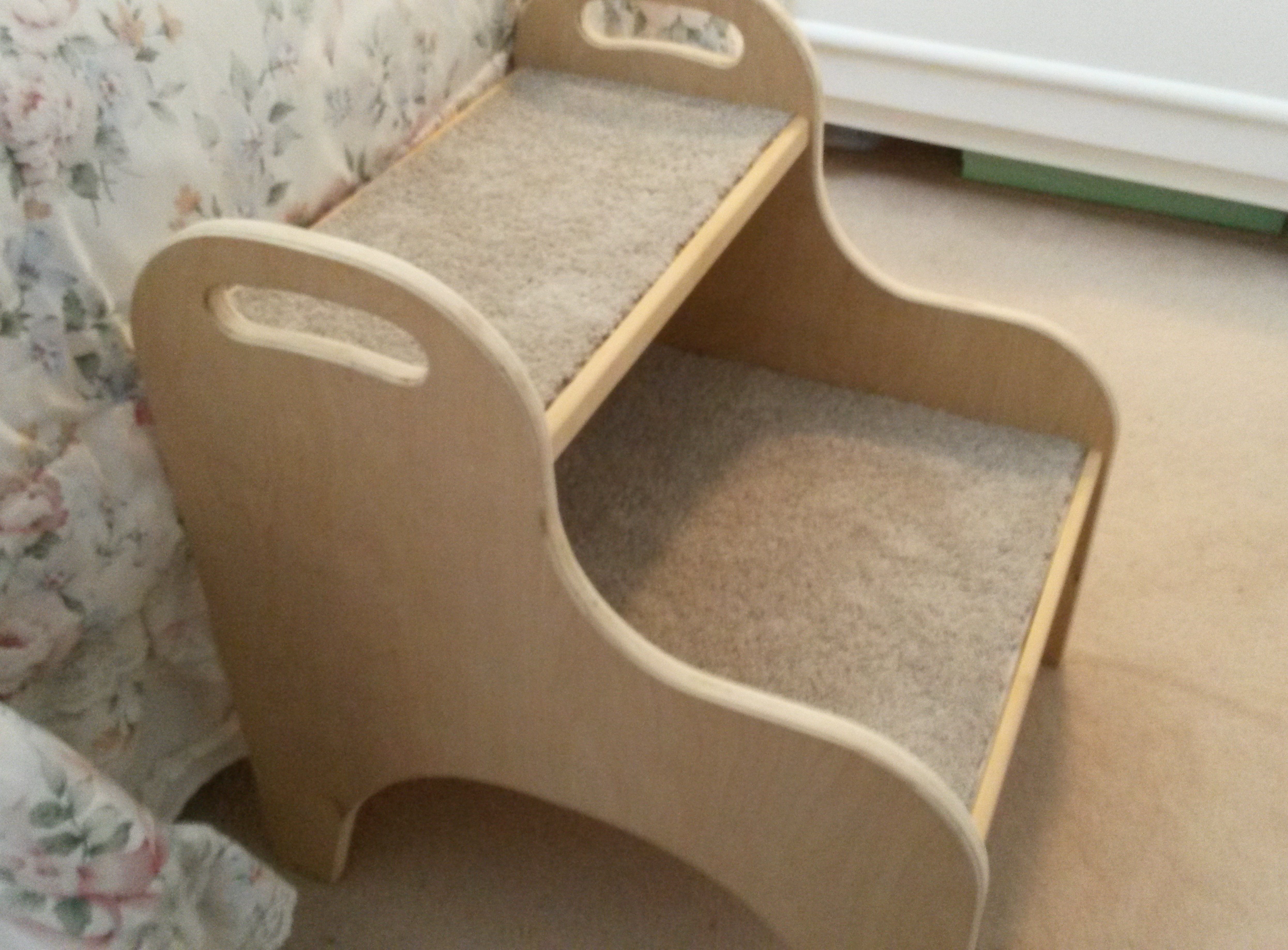 2014-04-26 08.39.06My Dad built me a great set of pet stairs so my small dog Gracie could get up on the bed by herself which means I am not always there to watch her. The bedroom is on the second floor and I started to worry about the window. The bed sits directly under the window and acts a bit like a headboard. When the weather is warm that window is usually wide open to catch every little breeze… we don’t have AC.