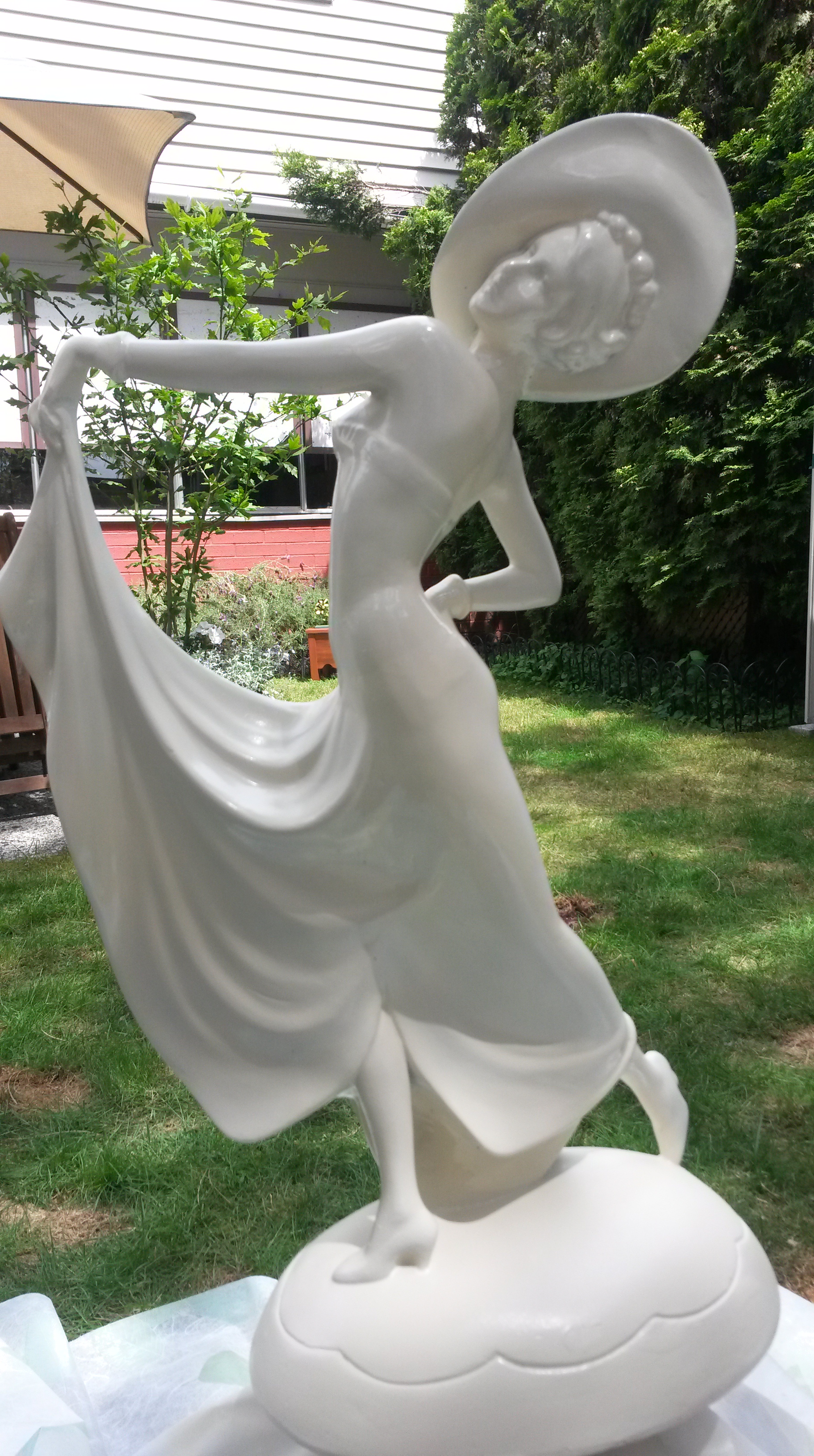 We have been living with the Ivory Lady for a couple of weeks now. When I first brought her home the look on Chris’s face summed up his feeling on her very well. He didn’t say so but you could tell he hated the statue. My son, Stephen, was equally unimpressed. As I mentioned earlier I’m not a fan of this type of thing either. She fell into that category that I call kitsch, which is not something I was ever attracted to. However I have actually grown attached the statue.