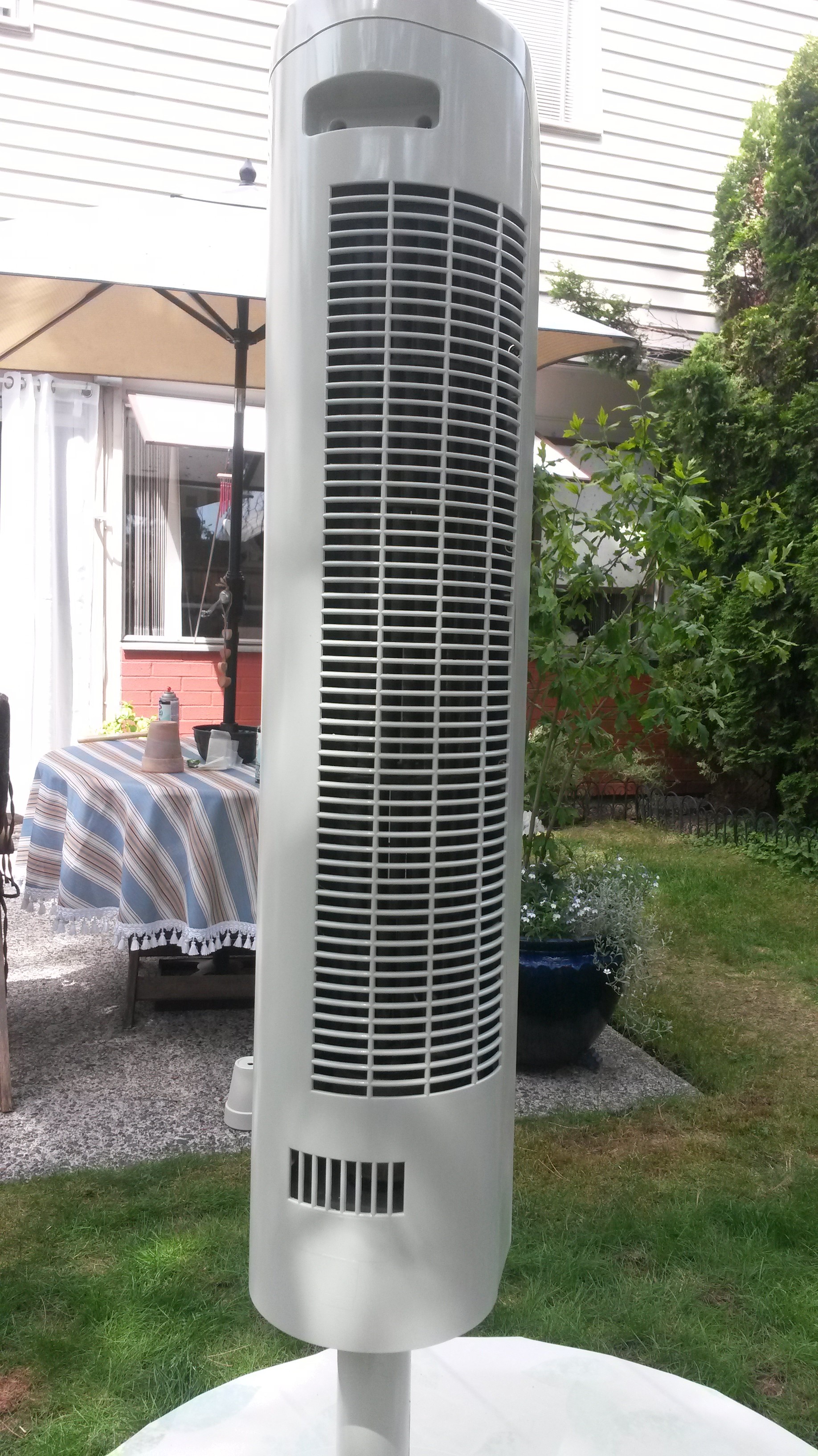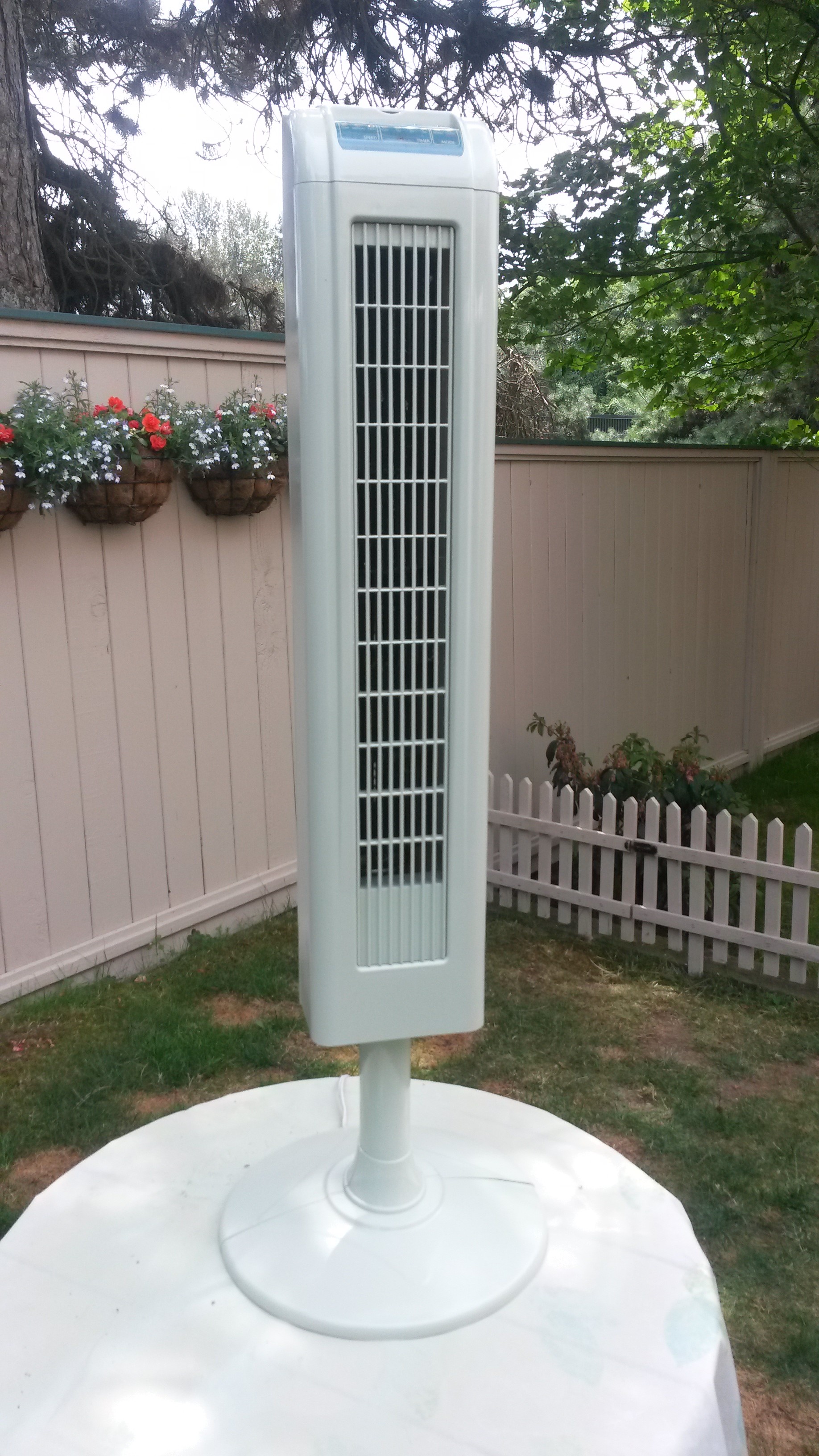 The first thing I had to do was figure out if and how I could take the fan apart. After a bit of Googling I found some instructions here. They were a little vague but I eventually figured them out and got the back panel off of the fan. It wasn’t easy but this let me spray paint everything without having to tape over the vents. Had I been forced to cover the vents then they would have been left that awful yellow. The only thing I ended up having to tape off was the control panel. I did paint over the clear plastic little flip lid on the top of the fan. It covers the compartment where you are suppose to store the fans remote control. It wasn’t the most attractive color so I just painted over it rather then try to tape it off. To protect the interior I just slipped some newspaper around everything and taped it closed. Once that was all done it was a simple process to spray paint all the parts and let them dry.
