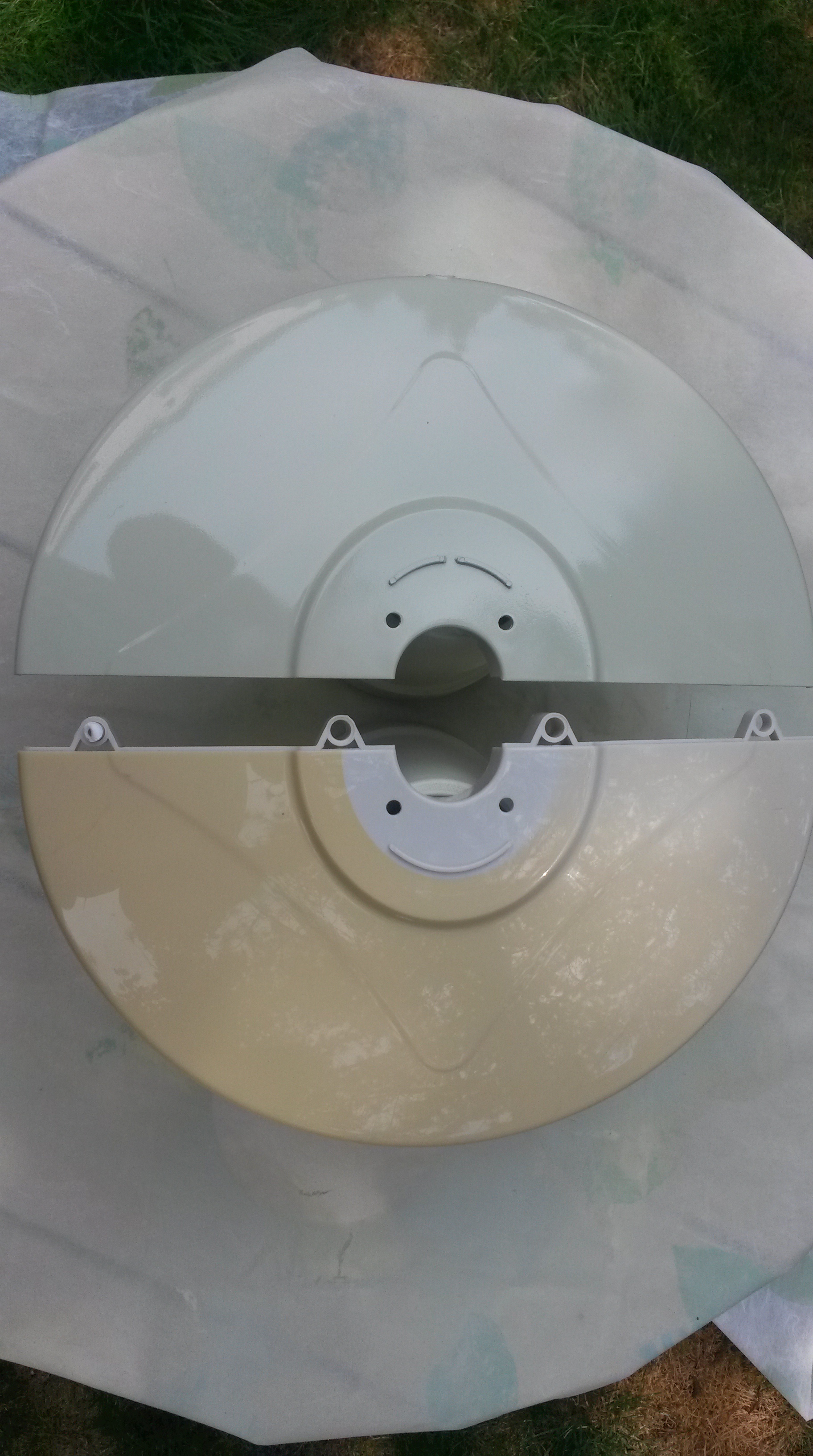 We have owned this Black and Decker fan for many years. It has worked faithfully but the housing was beginning to yellow. I had no idea how bad the yellowing was until I took these shots. Wow! It looks like I tried to paint it mustard and failed badly. I got a little involved with taking it apart and forgot to take a before shot. However it was already in pieces from being stored all winter. I didn’t feel like assembling it for the before shot but you can imagine how shabby it would have looked since it had taken on more then one shade of mustard yellow.